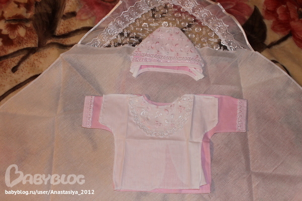 А еще к нему прилогалось 2 хорошелькие ковточки, 2 шапочки, пеленочка с кружевным уголком и 2 простые пеленки))))