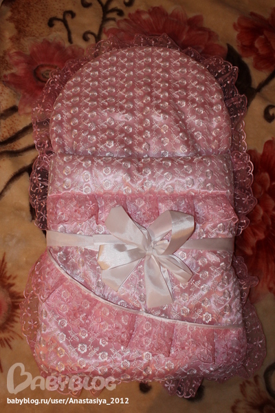 Пришлось купить сегодня набор на выписку.. Ой как не хотелось покупать конверт, но деваться некуда, уж оочень у нас похолодала и боюсь застудить малышку в заранее купленом пледике. Но ничего страшного. купила самый красивый на мой взгляд наборчик из 9 предметов для выписки))) Конвертик круживной и потом хорошо ляжет в коляску (будет и там нарядно =) )