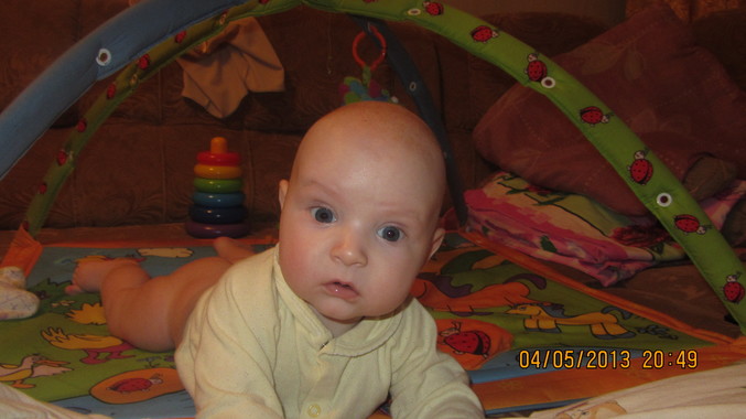 давно не писала ничего про Николая) вот и 5 месяцев.. и когда же они успели пролететь?... со старшим время тянулось очень долго...)) а вот Нико растет сама не замечаю как)) когда я только родила, мне казалось, что я снова мама первого сыночка, так они похожи были)) теперь я вижу - насколько разные у меня сыновья) характерами сильно отличаются) Николай более самостоятельный что ли...) сам заснуть может, если я со старшим занята, меньше капризит, когда не может что-то сделать. старший помню, все свои умелки преобретал с жутким нутьем и упорством) а вот Нико все делает спокойно, не получилось - пробует позже) только вот капризки есть немного сейчас - очень ползти желает и когда устает - начинает бузить))