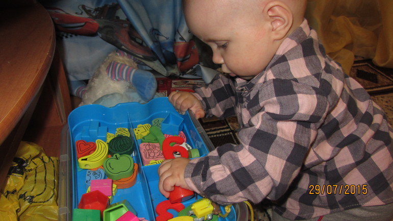 Игрушки Ника теперь не сразу тянет в ротик, а любит их долго крутить в руках и рассматривать, поэтому мы начали развивать мелкую моторику, перебирая мелкие