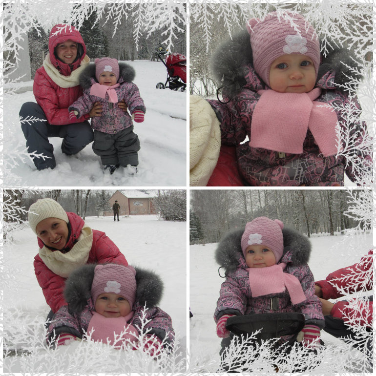 Про зубки! Режутся у Ники 2 верхних зубика! Ура) а то я с Никой и забыла, что у детей зубы еще расти должны))))) к году будет 4 зуба)Погода радует снежком, Николай вытащил снегокат, хотя раньше его не любил) Нике он сразу понравился! Катала их вдвоем даже, Ника потом слезать не хотела.