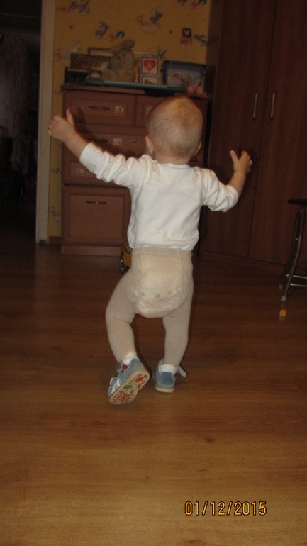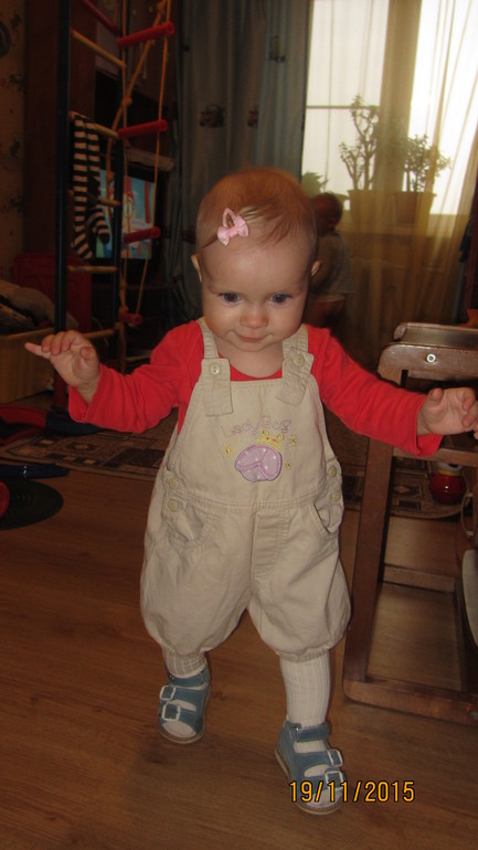 Передвигается Ника исключительно на своих двоих. Научилась вставать на ножки с корточек.