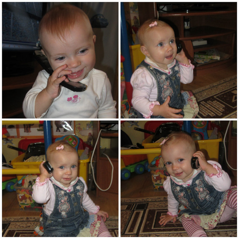 Научилась Никуся по телефону говорить) Телефон к ушку подносит и говорит да-да)