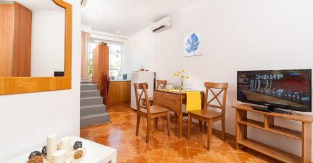 Самые просторные и комфортные трехкомнатные апартаменты в двух уровнях с уютным интерьером в сочетании с домашней функциональностью, дополнительно оснащенные стиральной машиной,- идеальный вариант для продолжительного семейного отдыха на берегу Черного моря.