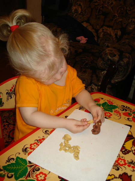 Ложку тут же изъяла и стала кормить мишу))) Гдето там, среди Никусиных кусочков пластилина еще тарелка завалялась...