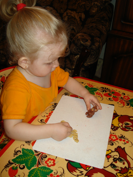 Лепили мы вчера с Никусей ее любимого мишку))) точнее, я лепила, а она наблюдала за процессом и сама что то пыталась.... Хочу отметить, что лепить ей нравится больше чем рисовать красками, по крайней мере, ведет она себя гораздо спокойнее... более внимательная и послушная, больше азарта и интереса в глазах))))