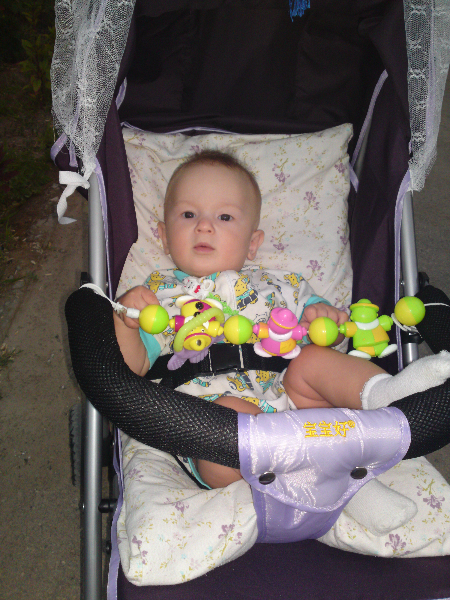 Еще стал более менее привыкать к коляске.С каждым днем все дольше и дольше сидит в ней.Мы куляем в прогулке ,слегка поднимаю спинку.Иногда даже сам засыпает в ней.А когда надоедает начинает плакать,то я сажаю его в кенгуру(он у нас всегда с собой)и радости нашей нет предела))))))