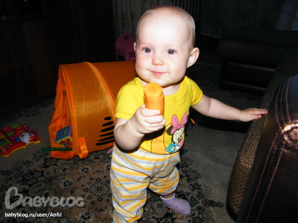Спустя всего каких то 11 месяцев мы видим каждый день взрослеющую барышню...именно взрослеющую....когда она научилась ходить? А включать пультом телевизор? А как она зажигает под Бара бара бара -бере-бере-бере))) А какие с папой они корчат рожицы и как дурачатся перед сном...Моя роднулька....моя самая вкусная, самая сладкая...самая самая... Хохотушка моя, моя радость с которой начинается и заканчивается каждый мой день.... я уже не представляю как можно с утра еще неумывшись и не заваривая чай не сварить кашу... самый просматриваемый в нашей семье теперь канал на TV это не музыкальный...и даже не папин любимый НТВ, а мультяшный Tiji смотрим все вместе завалившись на ковре))))