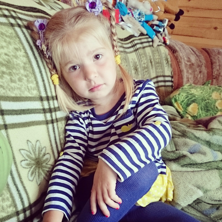 4. И по прежнему плакса,порой без особого повода закатывает истерики,успокоить трудно, а как она театрально хмурится)),моя актриса. Радует,что на публику она такое не устраивает,а наоборот пай девочка)))