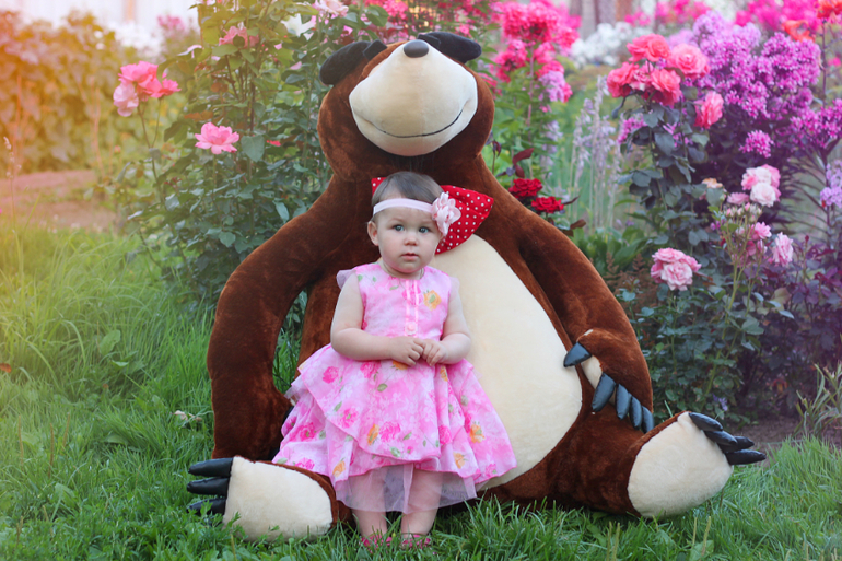 Протягивает мне игрушечную сову и говорит "у-у", хотя я ей только 1 раз показала, как говорит сова.