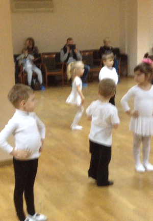 спортивные бальные танцы. Помимо танцев, которые показывает тренер, успевает станцевать соло прямо во время занятий (самая пляшущая девочка в кадре). Каждая поездка в радость, эмоции через край.