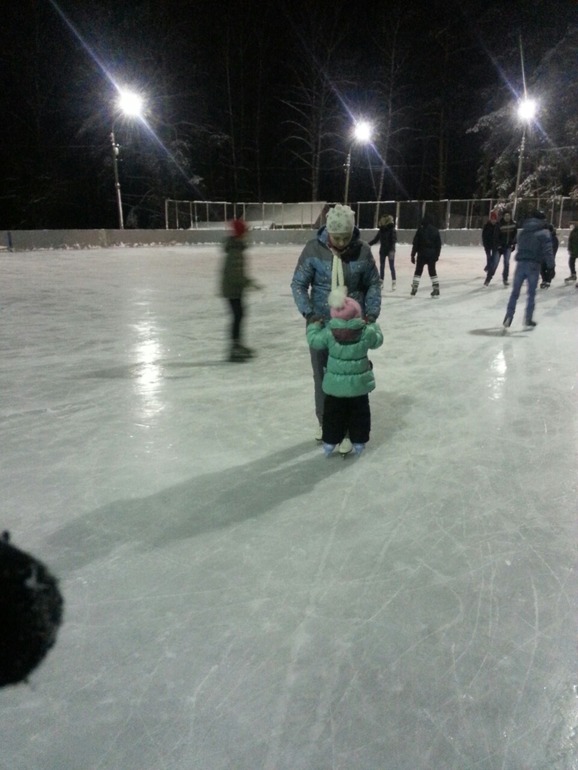 Немного потренировались дома стоять на коньках и отправились на каток!
