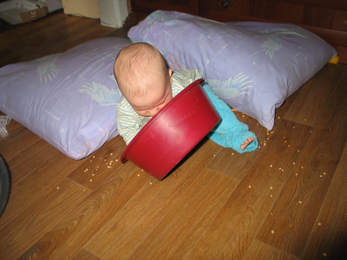 Кстати, в первый день на зуб его никто и не пытался попробывать. На второй любопытство взяло верх, и мама усилено вышкребала гороховую кашу из рта, на что сын ооочень возмущался. Теперь во время игр с сей сыпучестью при попытки сунуть горсть в рот, я строго говорю "нельзя" ииии О, ДА сынка смотрит на меня и, разжимая ладошку, высыпает все на пол. Он понимает, что такое нельзя!