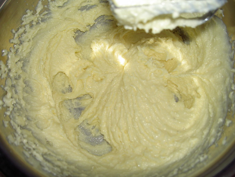 Размягченное сливочное масло растереть миксером или ложкой с сахаром и ванильным сахаром.