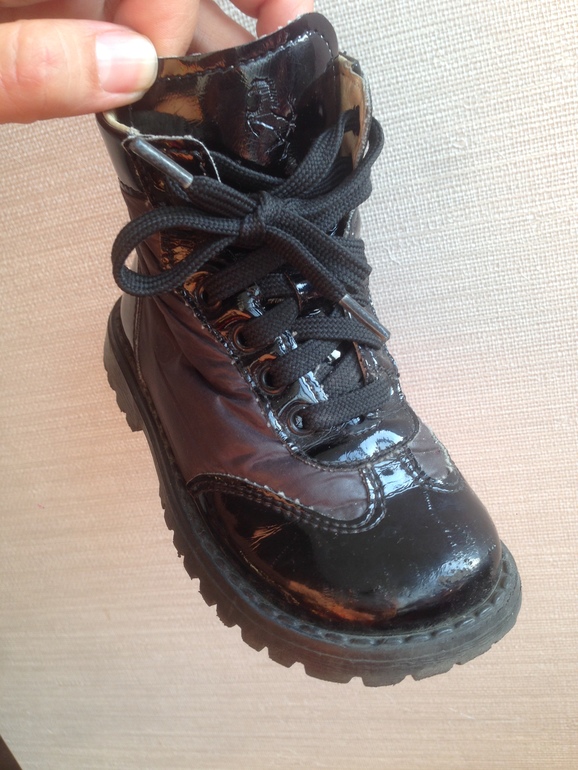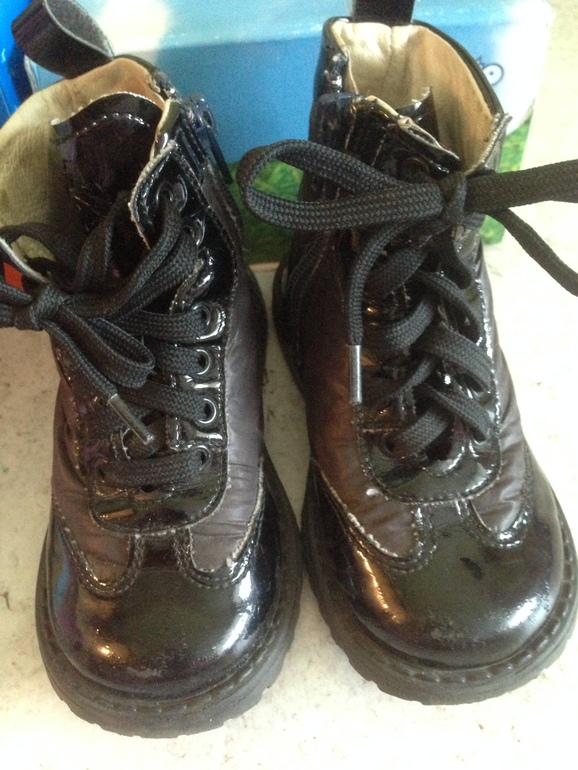 6) Ботиночки Ferrari черный лак + болонь, кожа натуральная, очень красиво смотрятся на ножке, 23 размер (по стельке13 см) - 400 рублей;