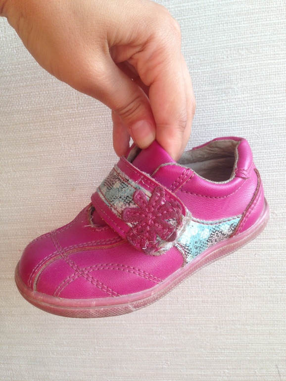 7) Кроссовки на липучке Unichel фуксия, кожа натуральная 22 размер (по стельке 13,5 см) - 400 рублей;