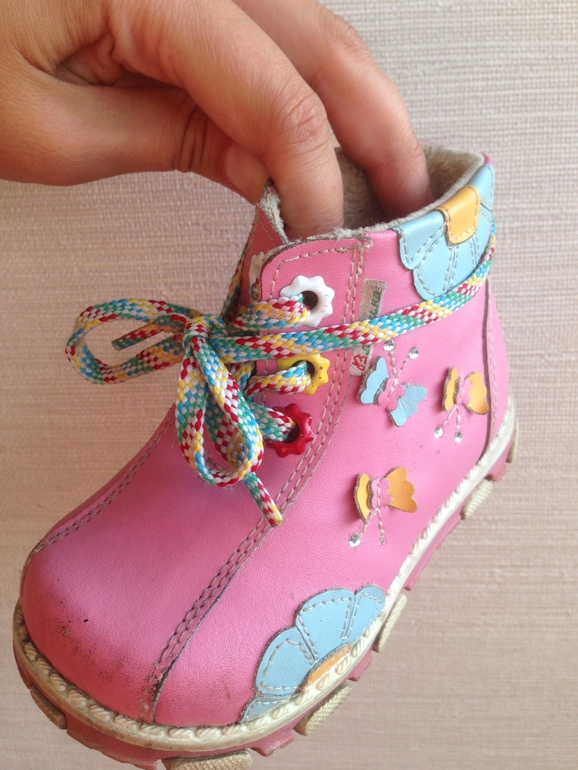 5) Ботиночки демисезонные ТМ «Веселый мишка» бледно-розовые, верх - кожа, внутри - текстиль, 13 размер (по стельке 13 см) - 300 рублей;
