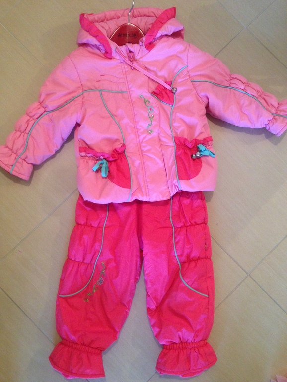 Подкладка: х/б. Верх: п/э. Утеплитель: холофан. Для девочки 2-3 года. Рост 86, размер 52. Подробности и доп.фото под срезом. Костюм в идеальном состоянии, не испачкан, не порван!
