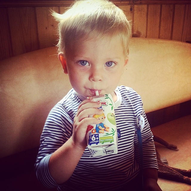 Научился пить из трубочки покупной сок!!! Ура! Теперь не будет трагедии если я оставлю дома поильник!