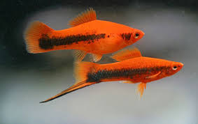 вот таких рыбок, чтобы понятно было. Пять штук, две совсем молоденьких самочки и две взрослых, но всего один самец. И была среди них одна самочка ну очень красивая, рябая вся, крупная и очень задиристая. Я все жду ну когда же она потомство принесет, красивые малечки бы получились, от классической красной уже получили мальков, таких же как она, не цветных, красненьких. Вот сегодня разглядываю ее на предмет "а вдруг беременная" и мне в глаза бросается, что она превратилась в мужика! У меченосцев это не редкое явление, но таааакой подставы именно от этой рыбки я не ожидала)))))