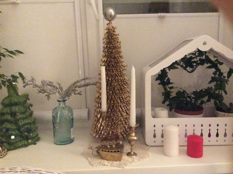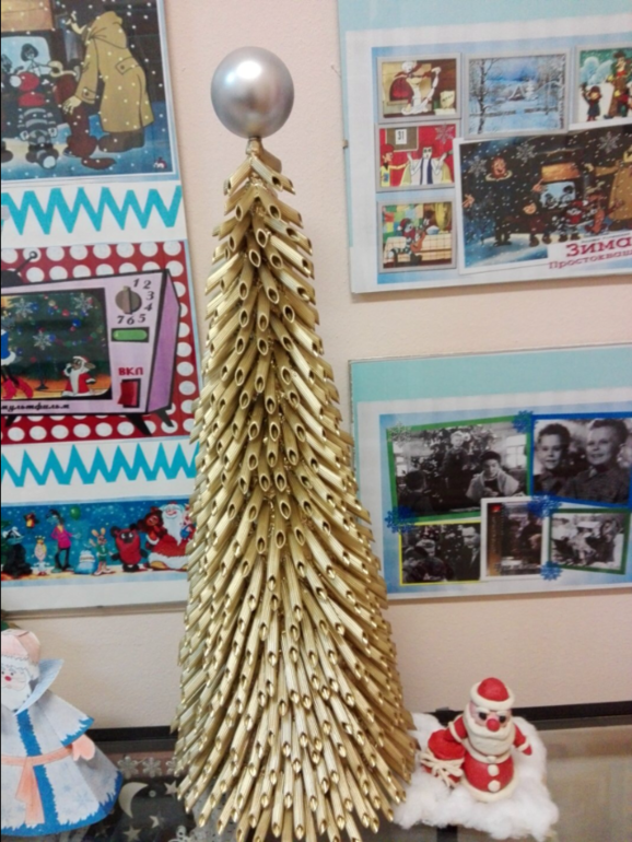 Не может мой инженер соорудить что нибудь скромное... Встречайте! Елка из макарон!!