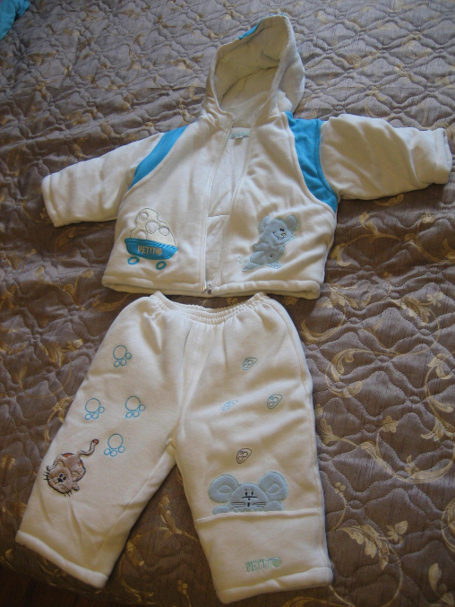 Продаю совершенно новый костюм на осень-весну можно как на мальчика, так и на девочку - он белый симпатичный). Размер указан 18 месяцев. Не одевали ни разу. забыли про него. Пролежал в шкафу и только недавно его нашла... Чека нет, т.к. его дарила бабушка - бирки тоже никакой нет, наверное она отпорола скорее всего... Продаю за 500 р, т.к. не представляю сколкьо он стоил и сколько может стоить...