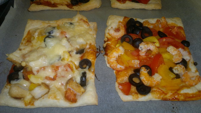 кулинарное сообществоУ меня сегодня день отдыха от готовки, так что делали с Максиком вот такие пиццы. Парочку обычных ( с курицей, перчиком и помидорами, маслинами и сыром, а две постные - с креветками и овощами также)