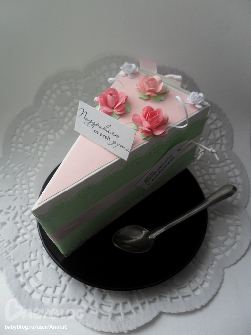 Такой тортик - отличная коробочка для вручения маленького презента в эти праздничные майские деньки. Легкий воздушный шарфик или вкусные конфетки запросто уместятся внутри него.