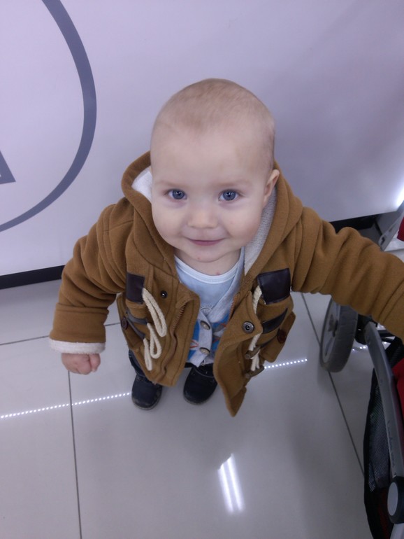 Ой хитрый жук! Глазища то какие, знает, чем маму зацепить) Пальтишко супер!