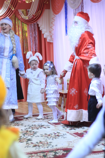 Разыграли сказку про зайца и лубяную избушку. Особо говорящие дети читали стишки, застенчивые были заняты в массовке)Отдельно про Деда Морозаа. Большую часть времени Дед разговаривал почти обычным голосоом, без весеннего рева стада оленей, и только под конец, когда все дети привыкли, немного похохотал.