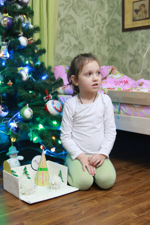 Почти все делала Аксюта, я лишь немного помогла) Голубая лужица - это лед, на льду Аксюта, я в сторонке на лыжах. Папе на данной инсталляции места не нашлось, увы)