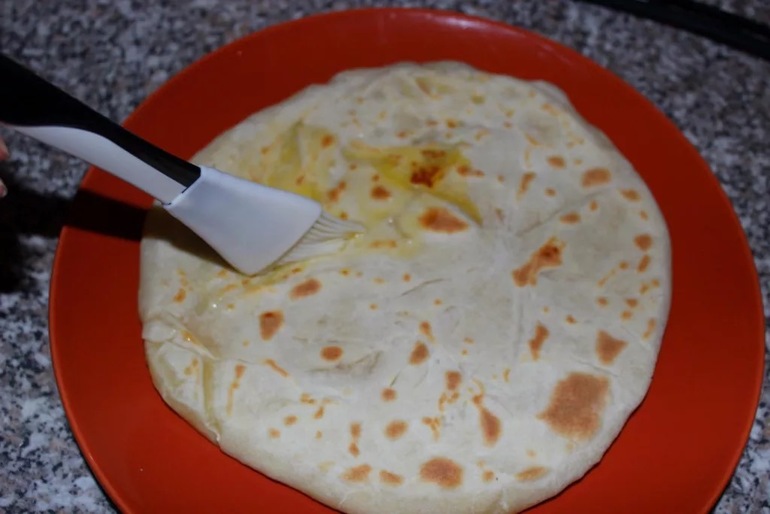 Готовую лепёшку смазываем растопленным сливочным маслом