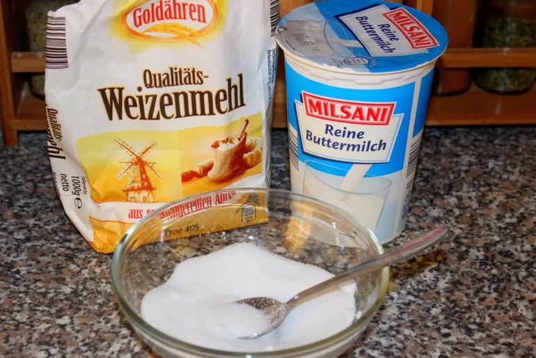 Тесто делается очень легко, смешиваем соль, кефир и добавляем муку. Готовому тесту даём отдохнуть минут двадцать.