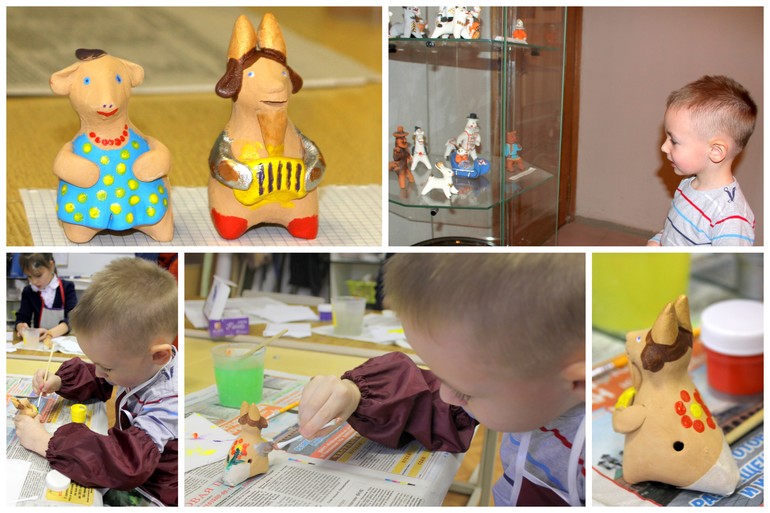 Ходили с Ромкой к нам в эстетический центр расписывать свистульки, символы будущего года. У Ромки получился франтоватый козёл, в серебряной рубахе в бронзовый горох и красных сапогах. А Я разрисовала милую овечку, нарядив её в сарафане и красные бусы.
