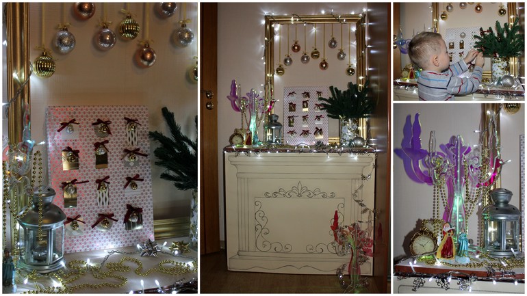 В канун Нового года превратила нашу тумбочку в "камин". Дома красота) Ромке очень понравились праздничные изменения