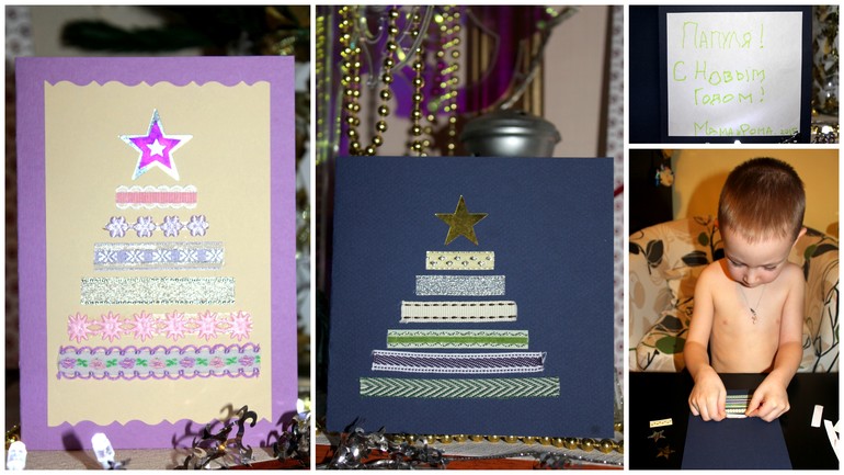 Показывала Роме в инете, какие можно сделать открытки, и он выбрал Ёлочку "шнуровку". Решено, сегодня делаем её, тем более открыточка очень простая. Ромка все делал сам, ну как обычно) Отверстия проколол шилом (удобно работать на пенопласте), ну и продел ленточку (удобнее взять твердую бумагу или картон, чтобы во время шнурования не помялась). Вот и всего то дел, осталось приклеить на на основу открытки. А в результате, вот такая красота) Подарим Бабуле!
