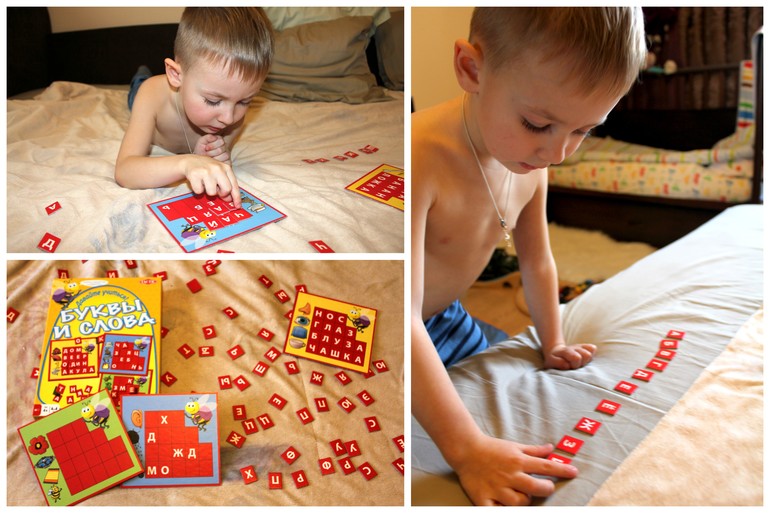 Мы с мужем любим совместно разгадывать кроссворды, а Ромка чувствует себя как то в стороне. И теперь когда он научился не только как писать, но и раскладывать слова на слоги и буквы, может самостоятельно разгадывать свои детские кроссвордики, которые мы теперь покупаем и распечатываем в огромном количестве. Достойный сын своих родителей!))