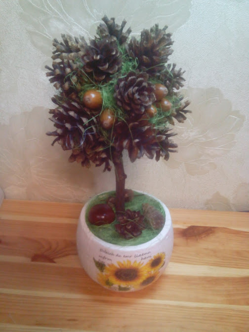 Ого.Расточительно...Все любуюсь. Хочу повторить:-) Идея нравится.А желуди и каштаны лаком покрывали? "Ужасно" красиво. Эх, дойдут ли ручки? ( но шишки уже заказала)