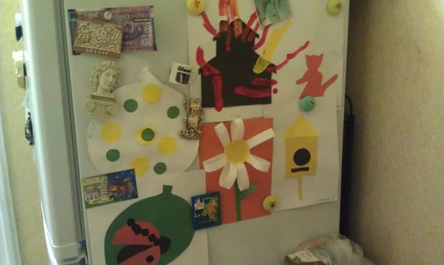 У нас экспозиция обновляется на холодильнике.По мере появления нового,старое снимается,подписывается возраст и складывается в папочку.