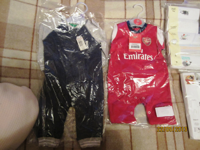 Ну, форма Арсенала и бейсбольная - это для мужа, уже большие довольно-таки. На 6 месяцев.