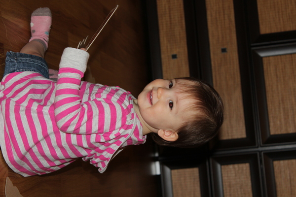 Хлопает в ладошки когда ей говоришь "ладушки" или просто давай похлопаем. При желании машет рукой на прощанье. И если раньше игрушки бросала, то сейчас даёт их мне.