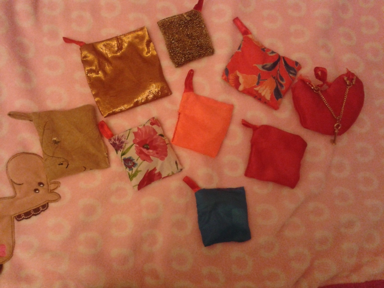 Уже напрягла маму нашить подобных из разных лоскутков ткани - пусть ребенок трогает-развивается)))