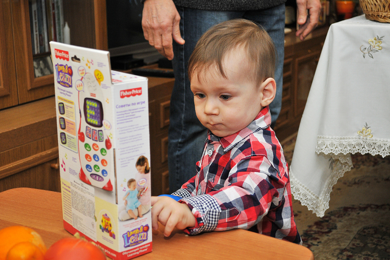 Бабушка с дедушкой подарили нам телефон Фишер Прайс - прикольная игрушка. Главное - тихая!