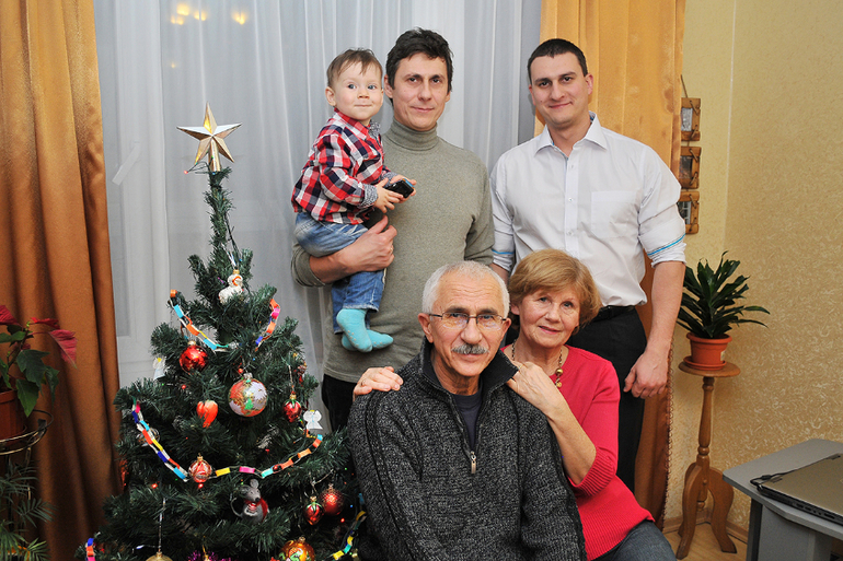 Мужская часть семьи и бабушка с дедушкой)))