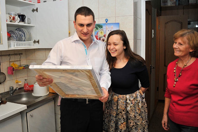 Вручили подарок - холст с классическим портретом родителей. Я даже не думала, что он произведет на них такое впечатление! Сказать, что им очень понравилось - это не сказать ничего. Они были в восторге!