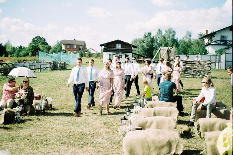 На свадьбе 16 августа 2014 года мы выступали в роли спасателей: весь декор и концепцию нужно было создать за три недели до свадьбы, после того, как невесте пришлось отказаться от услуг другой компании.