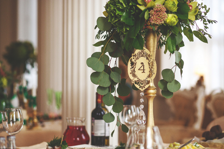 Гостей на свадьбе было 150 человек, над монтажом трудилась команда из 10 человек. В конечном итоге мы задекорировали зал торжественной регистрации, ресторанный шатёр, сладкий стол, фотозону и систему навигации для гостей (план рассадки и указатели, разбросанные по всему парку).