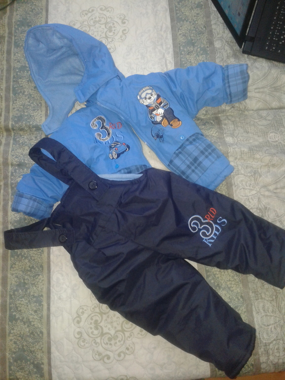 3. Зимний комплект на мальчика. Размер на бирке 11, можно надевать с 8 месяцев. Внешне как новый, подклад немного окрасился. Экв. 1200 р.