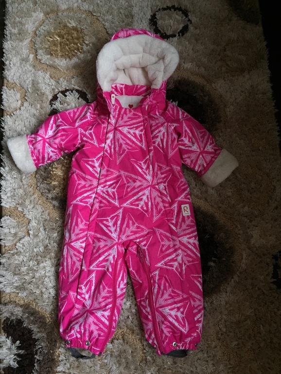Продаю красивый и теплый комбинезон Reima. Б/у 2-3 раза очень бережно в коляске, так как дочка еще не ходила. Покупали для подстраховки на замену нашего основного комбинезона Kerry, но заменять так и не пришлось, поэтому Рейму несколько раз надели просто для разнообразия.