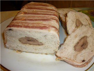 Это что-то вроде мясного рулета из курицы и индейки, с куриной печенью внутри. Готовится 2 дня и кушать можно только на 3й. Говорят, что не реально вкусно. Рецепт я нашла на форуме "Пёс и кот" у местой девочки (женщины) - удивительного кулинара, которая на заказ занимается выпечкой пирогов, рулетов и т.д.